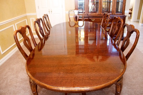 This solid Cherry Dining Table with 8 chairs is available in Southlake, Texas for $499. The set includes