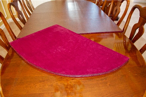 • Custom-made red felt-backed table cover.